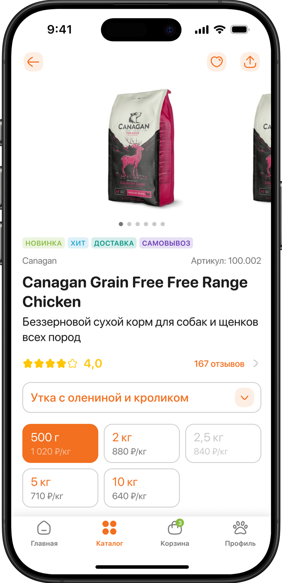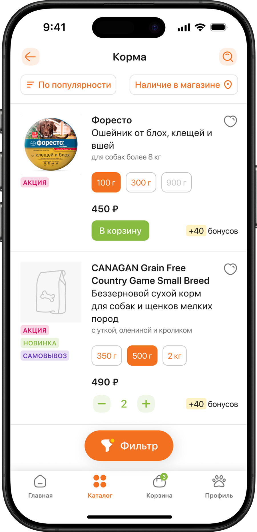 Более 11 000 товаров с удобной сортировкой по бренду, цене и фасовке.