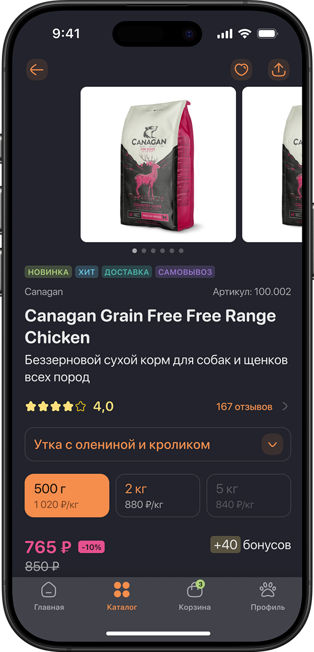 Приложение для сети зоомагазинов Ле’Муррр: покупки, бонусы, доставка